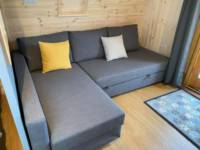 Lapwing is a glamping pod with one double bed and a sofa bed. It can sleep up to 2 adults and 2 children. Lapwing features a kitchenette, ensuite bathroom, dining area and private veranda with outdoor seating.