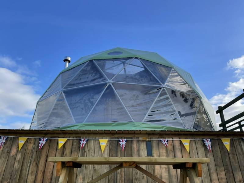This dome sleeps 6 to 8. Full en suite facility and private kitchen. All bedding and towels included. Well behaved dogs welcome.